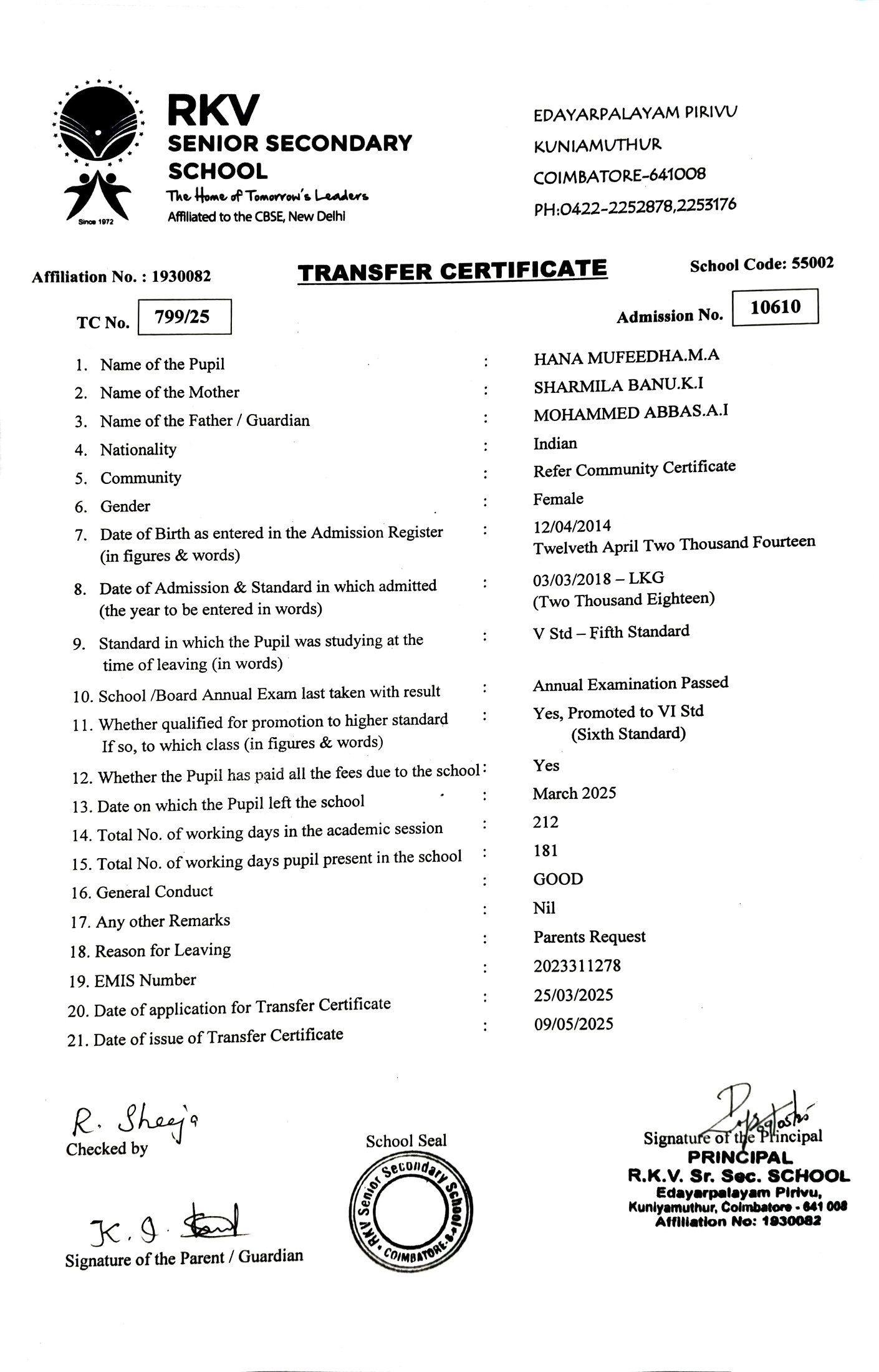 R K V SENIOR SECONDARY SCHOOL KUNIAMUTHUR COIMBATORE TN
