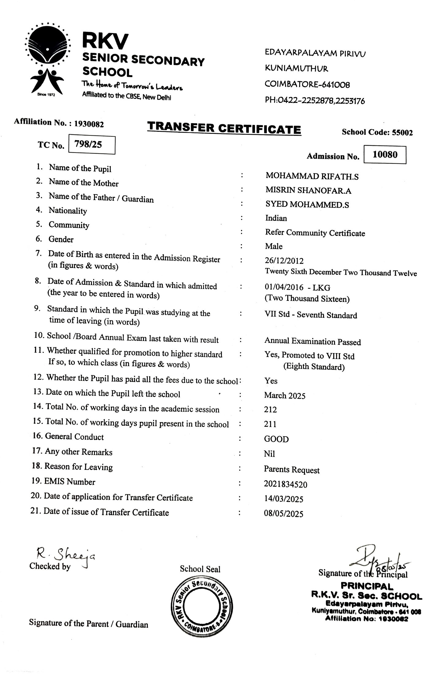 MOHAMMAD RIFATH S